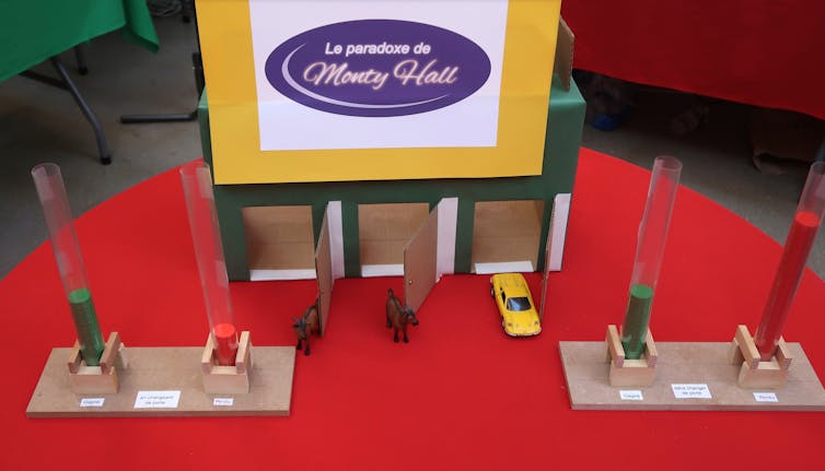 On trouve très facilement en ligne des simulations du jeu, et nous l’avons expérimenté en situation réelle lors de la Fête de la Science avec un grand nombre de visiteurs. Les résultats sont sans appel : lorsque le candidat conserve la porte qu’il avait choisie initialement, il gagne environ dans 33 % des cas, alors que la stratégie de changer de porte aboutit à environ 66 % de succès. C’est donc bien le second raisonnement qui semble être correct. Mais alors, qu’est-ce qui cloche dans le premier ?