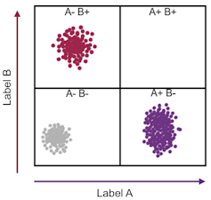 Imagine a cell contains just two kinds of protein, X and Y. Every individual cell will have a specific amount of each of these two proteins. This can be represented as a point on a graph where the level of protein X becomes a position along the x-axis, and the level of protein Y its location along the y-axis.