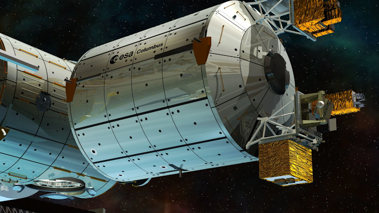 L’horloge atomique Pharao sera accrochée sur la station spatiale internationale pour mesurer précisément comment le temps s’écoule quand elle est un peu plus lointaine de la Terre, donc soumise à une gravité plus faible. Programme Aces-Pharao de l’ESA, CC BY